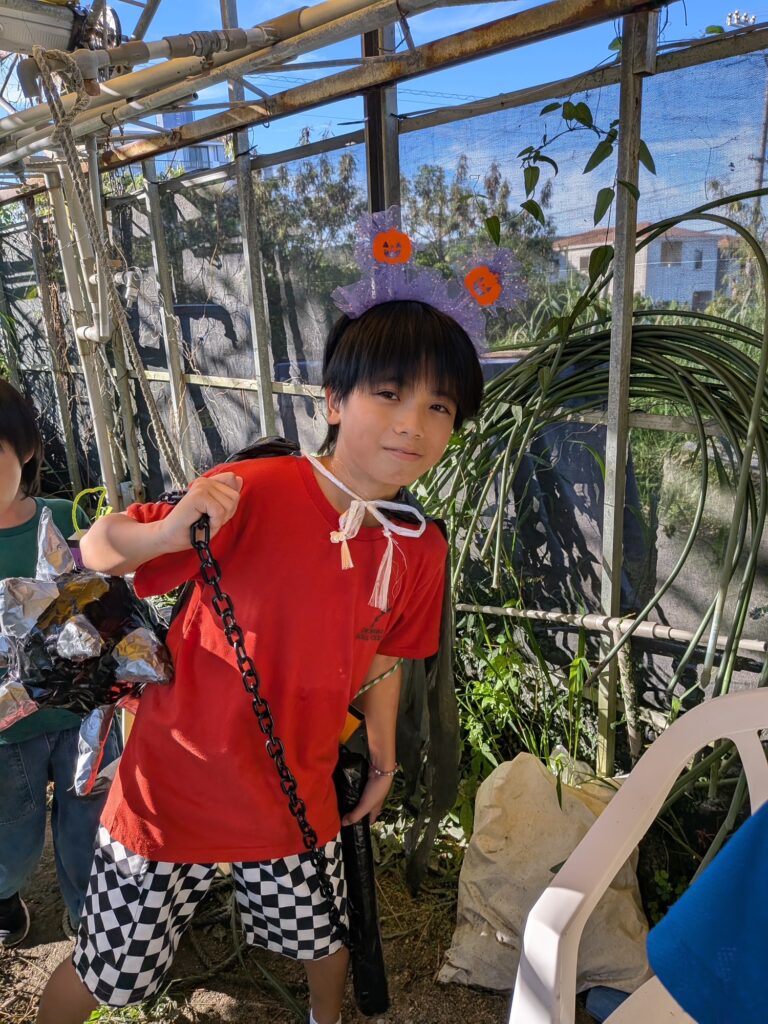 ハロウィン 投稿日: 2025年10月31日2025年10月31日 投稿者: ikiikistaff 今日雨模様ですがハロウィンの日ここ沖縄にも馴染んできた毎年の行事ここいきいき農園にも 世間にめげずに畑のメンバーが一堂に一部のみ衣装して来園畑でハロウィンのお菓子お菓子くれないと暴れてるよなんて言いながらお菓子もらいニコニコして帰りました地域を回っていかほどのお菓子が🍪
